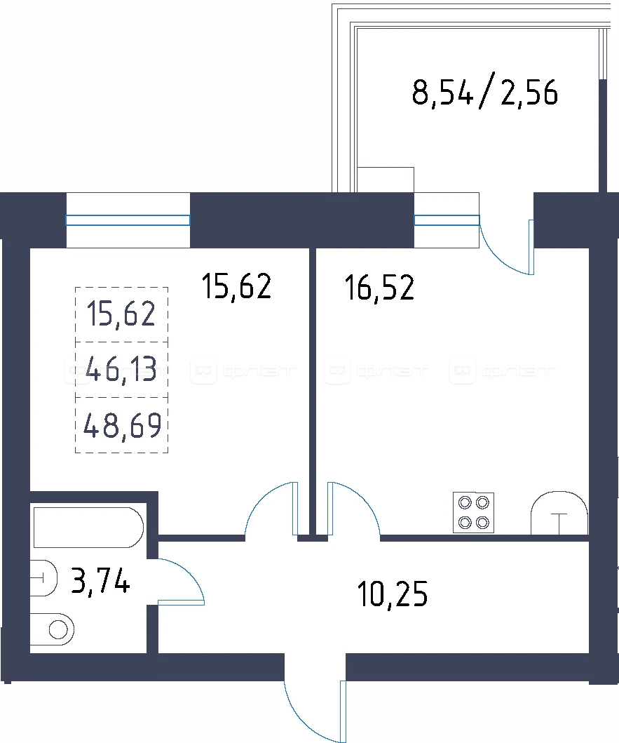 - 48.69/15.62/16.52 м²